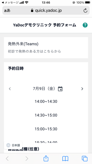 受付科目の選択や、受診希望日時などの入力項目を記入します。