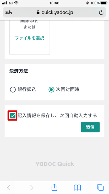 記入情報の保存をご希望される場合にはチェックをして、送信ボタンをクリックしてください。